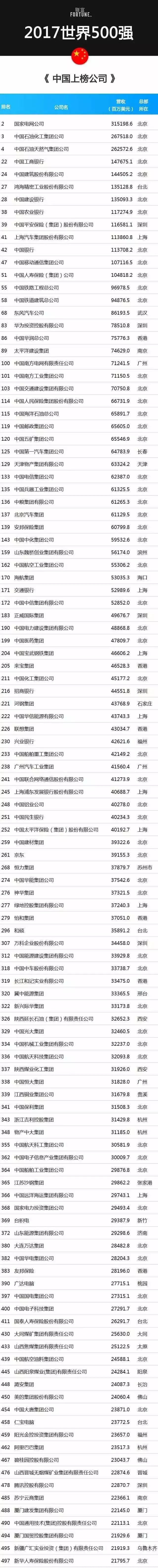 下面我們一起來看看本年度《財(cái)富》世界500強(qiáng),115企業(yè)中國(guó)企業(yè)都有誰?