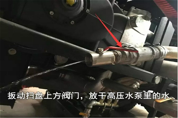 3.寒冷地區(qū)冬天車輛使用完畢后,應(yīng)放干水箱、水管、水路以及濾杯里面的水,防止凍裂(扳動閥門扳手放水)